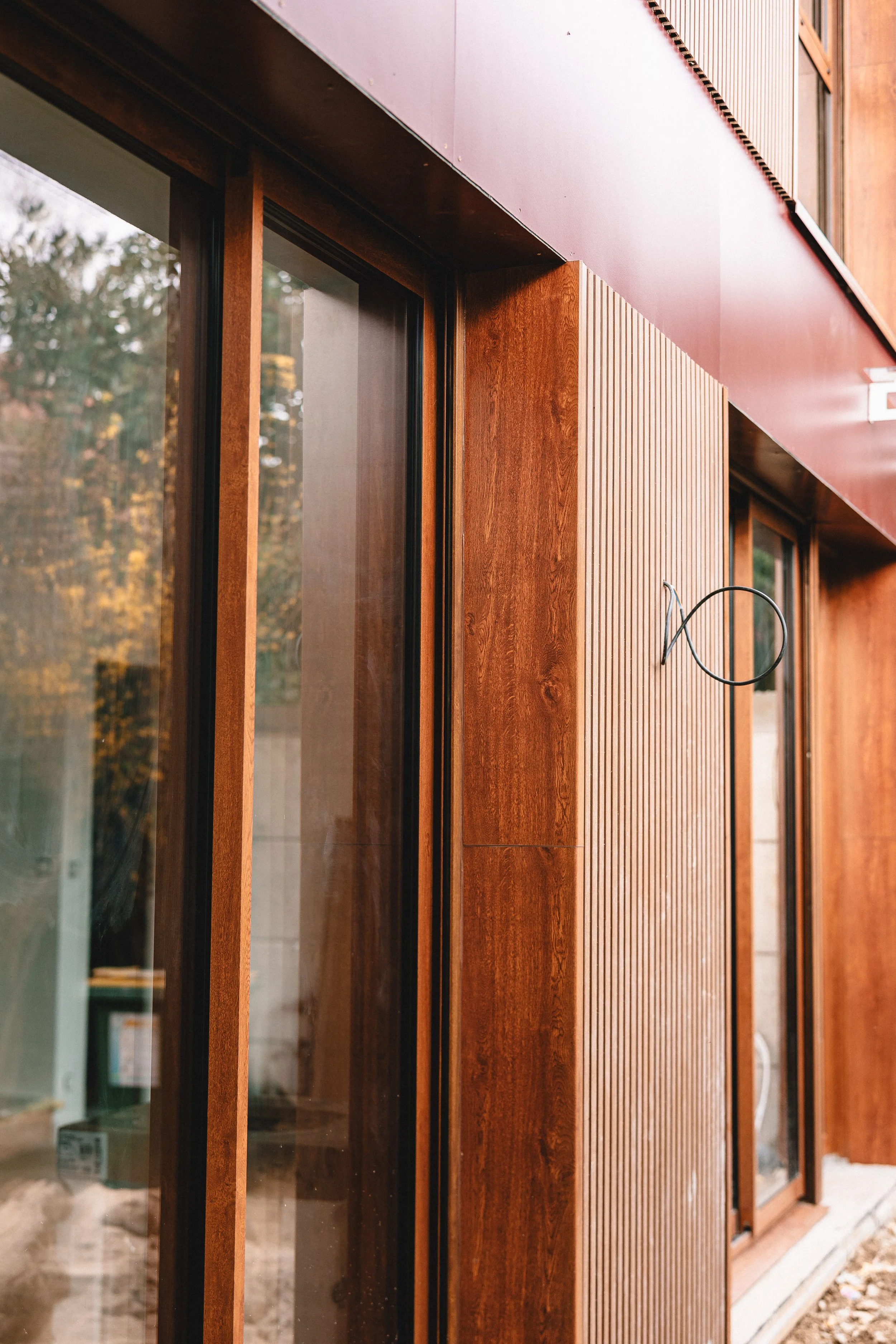 Les fenêtres en bois ajoutent une touche noble et naturelle à l’ensemble.